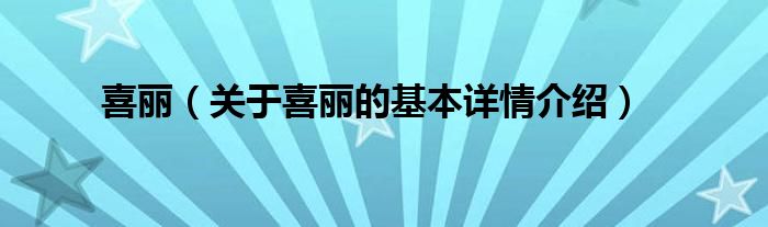 本文关于喜丽的基本详情介绍就讲解完毕,希望对大家有所帮助。