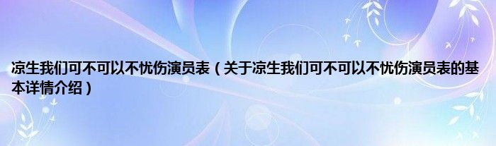 本文关于凉生我们可不可以不忧伤演员表的基本详情介绍就讲解完毕,希望对大家有所帮助。