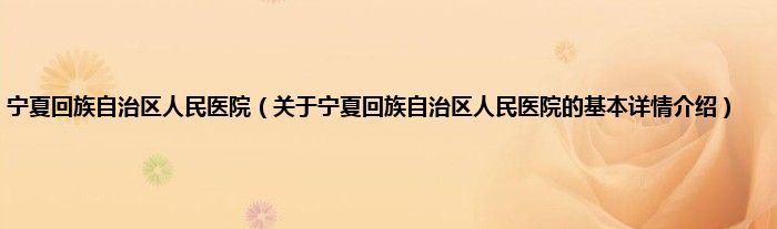 本文关于宁夏回族自治区人民医院的基本详情介绍就讲解完毕,希望对大家有所帮助。