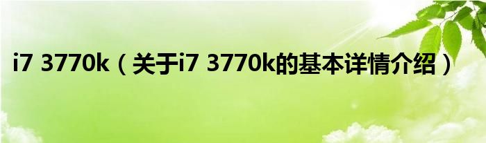 本文关于i7 3770k的基本详情介绍就讲解完毕,希望对大家有所帮助。