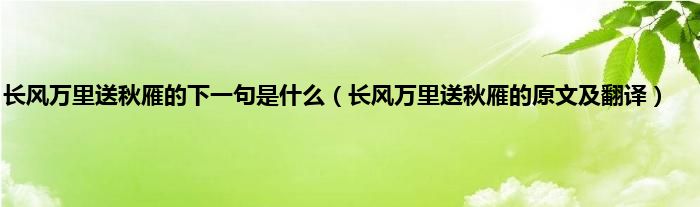 欢迎观看本篇文章,小升来为大家解答以上问题。长风万里送秋雁的下一句是什么,长风万里送秋雁的原文及翻译很多人还不知道,现在让我们一起来看看吧!