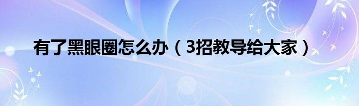 欢迎观看本篇文章,小升来为大家解答以上问题。有了黑眼圈怎么办,3招教导给大家很多人还不知道,现在让我们一起来看看吧!
