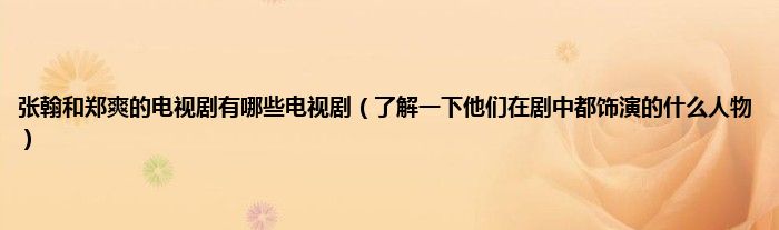 欢迎观看本篇文章,小升来为大家解答以上问题。张翰和郑爽的电视剧有哪些电视剧,了解一下他们在剧中都饰演的什么人物很多人还不知道,现在让我们一起来看看吧!