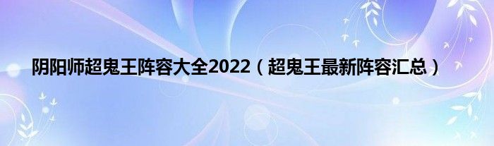 大家好,综合小编来为大家讲解下阴阳师超鬼王阵容大全2022,超鬼王最新阵容汇总这个很多人还不知道,现在让我们一起来看看吧!