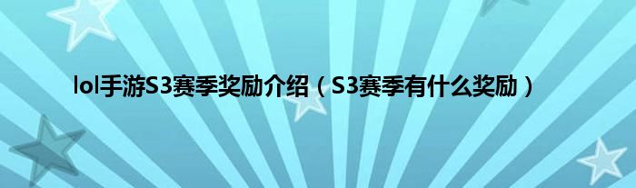 大家好,综合小编来为大家讲解下lol手游S3赛季奖励介绍,S3赛季有什么奖励这个很多人还不知道,现在让我们一起来看看吧!