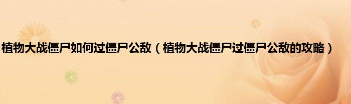 大家好,综合小编来为大家讲解下植物大战僵尸如何过僵尸公敌,植物大战僵尸过僵尸公敌的攻略这个很多人还不知道,现在让我们一起来看看吧!