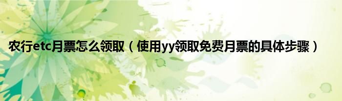 大家好,综合小编来为大家讲解下农行etc月票怎么领取,使用yy领取免费月票的具体步骤这个很多人还不知道,现在让我们一起来看看吧!