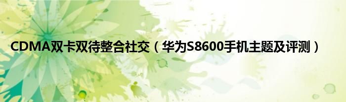 大家好,综合小编来为大家讲解下CDMA双卡双待整合社交,华为S8600手机主题及评测这个很多人还不知道,现在让我们一起来看看吧!