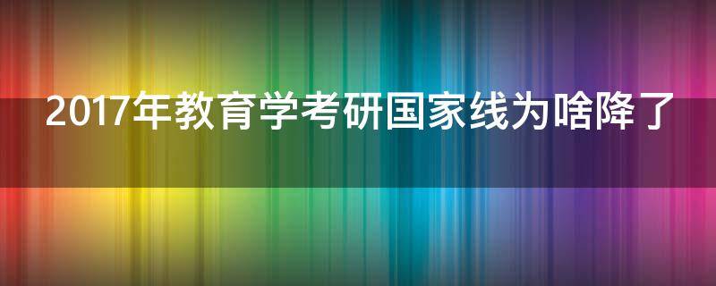 2017年教育学考研国家线降了的主要原因是教育学考研题目难度变大,很多考生考出的成绩偏低,为了完成研究生招生,所以该专业考研国家线就跟着降分了。全国硕士研究生统一招生考试(简称考研或统考)是指教育主管部门和招生机构为选拔研究生而组织的相关考试的总称,由国家考试主管部门和招生单位组织的初试和复试组成。普通高等教育统招硕士研究生招生按学位类型分为学术型硕士和专业型硕士研究生两种;按学习形式分为全日制研究生、非全日制研究生两种,均采用相同考试科目和同等分数线选拔录取。