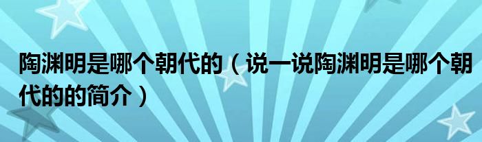 夏弥来为大家解答以下的问题,陶渊明是哪个朝代的,说一说陶渊明是哪个朝代的的简介,现在让我们一起来看看吧!