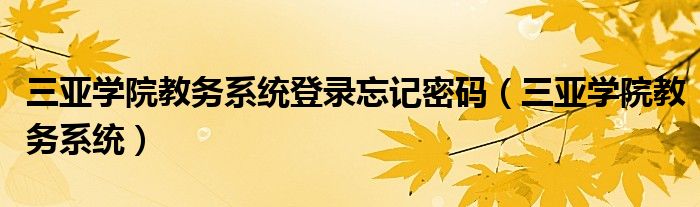 三亚学院教务系统登录忘记密码(三亚学院教务系统)