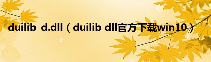 关于duilib_d.dll,duilib dll官方下载win10这个很多人还不知道,今天菲菲来为大家解答以上的问题,现在让我们一起来看看吧!