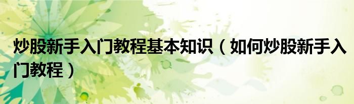 关于炒股新手入门教程基本知识,如何炒股新手入门教程这个很多人还不知道,今天菲菲来为大家解答以上的问题,现在让我们一起来看看吧!
