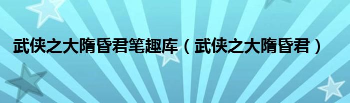 关于武侠之大隋昏君笔趣库,武侠之大隋昏君这个很多人还不知道,今天菲菲来为大家解答以上的问题,现在让我们一起来看看吧!