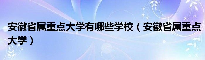 关于安徽省属重点大学有哪些学校,安徽省属重点大学这个很多人还不知道,今天菲菲来为大家解答以上的问题,现在让我们一起来看看吧!