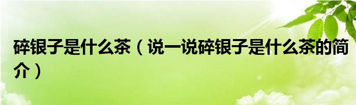 夏弥来为大家解答以下的问题,碎银子是什么茶,说一说碎银子是什么茶的简介,现在让我们一起来看看吧!