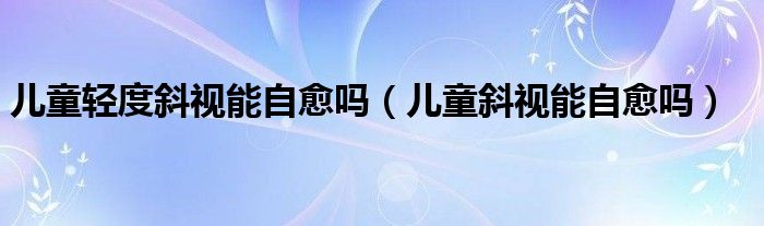 大家好,乐天来为大家解答以下的问题,儿童轻度斜视能自愈吗,儿童斜视能自愈吗很多人还不知道,现在让我们一起来看看吧!
