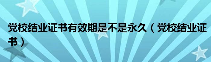 关于党校结业证书有效期是不是永久,党校结业证书这个很多人还不知道,今天菲菲来为大家解答以上的问题,现在让我们一起来看看吧!