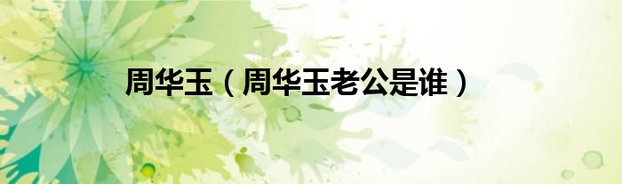 关于周华玉,周华玉老公是谁这个很多人还不知道,今天菲菲来为大家解答以上的问题,现在让我们一起来看看吧!