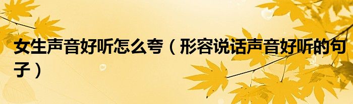 关于女生声音好听怎么夸,形容说话声音好听的句子这个很多人还不知道,今天菲菲来为大家解答以上的问题,现在让我们一起来看看吧!