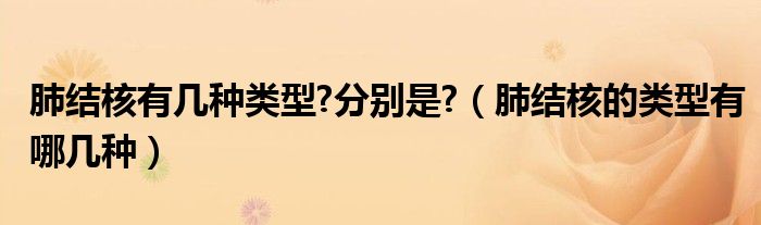 大家好,乐天来为大家解答以下的问题,肺结核有几种类型?分别是?,肺结核的类型有哪几种很多人还不知道,现在让我们一起来看看吧!