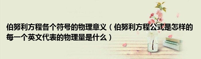 关于伯努利方程各个符号的物理意义,伯努利方程公式是怎样的 每一个英文代表的物理量是什么这个很多人还不知道,今天菲菲来为大家解答以上的问题,现在让我们一起来看看吧!