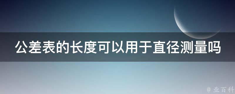 公差表的长度不可以用于直径测量,公差表的长度通常指的是公差表尺寸的刻度范围或有效测量范围。它主要用于测量工件的长度或距离,并不适用于直径测量。公差表的设计和结构主要用于测量线性尺寸,如长度、宽度、高度等。对于不同的测量要求,可能需要使用其他工具或设备,如卡规(卡尺)、外径微量计或内径测量工具等来测量直径。