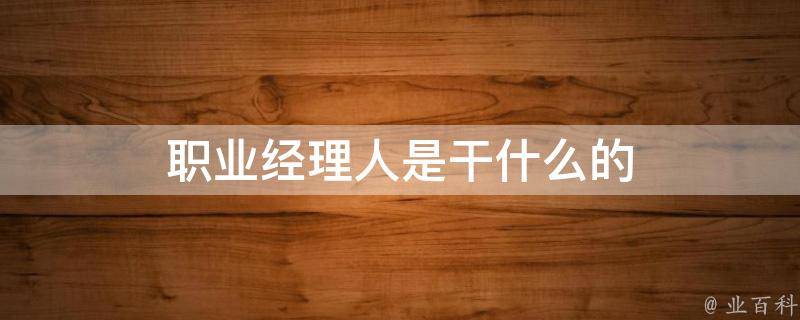 职业经理人是在一个所有权和经营权分离的企业中承担法人财产的保值增值责任,全面负责企业经营管理,对法人财产拥有绝对经营权和管理权的职业,由企业在职业经理人市场(包括社会职业经理人市场和企业内部职业经理人市场)中聘任。