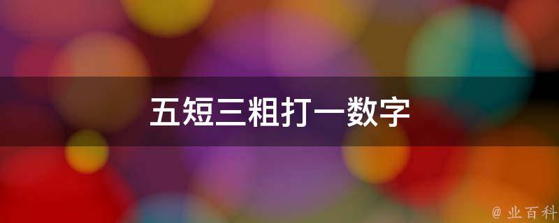 五短三粗打一数字是30,可以从五短三粗的笔画入手去猜数字。五字4笔画、短字12笔画、三字3笔画、粗字11笔画,4个字一共是4+12+3+11=30笔。因此五短三粗打一数字是30。五短三粗意思是形容人身材矮小但很粗壮。出自清无名氏《刘公案》第三回:姓陈名叫大勇,年有三十五六岁,生的五短三粗,相貌魁伟。