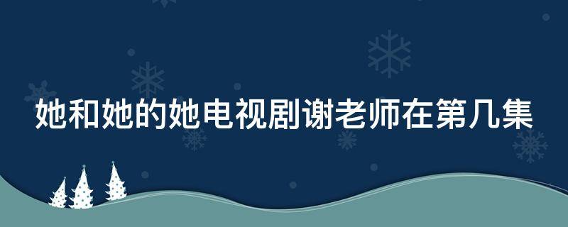 她和她的她电视剧谢老师在第一集。谢老师是电视剧《她和她的她》中的人物,出现在第一集中,新平派出所接到养护院报案,护理师说和阿长发现谢老师睡午觉之后就没有呼吸。