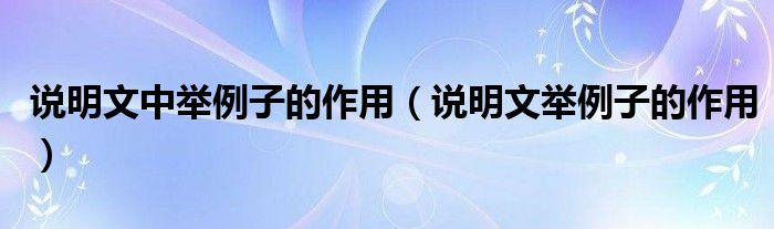大家好,小联来为大家解答以上的问题。说明文中举例子的作用,说明文举例子的作用这个很多人还不知道,现在让我们一起来看看吧!