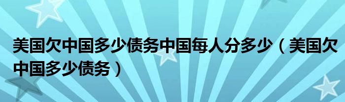 大家好,小联来为大家解答以上的问题。美国欠中国多少债务中国每人分多少,美国欠中国多少债务这个很多人还不知道,现在让我们一起来看看吧!