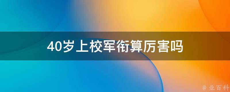 40岁上校军衔算厉害。正常来说,一个正团级上校的年龄在40岁到45岁之间,最高不会超过45岁。正团级军官在获得上校军衔时,通常在40岁左右,服役了几年以后,如果未能晋升为副师级大校,那么就要退役离开部队。所以40岁获得上校军衔是非常厉害的。