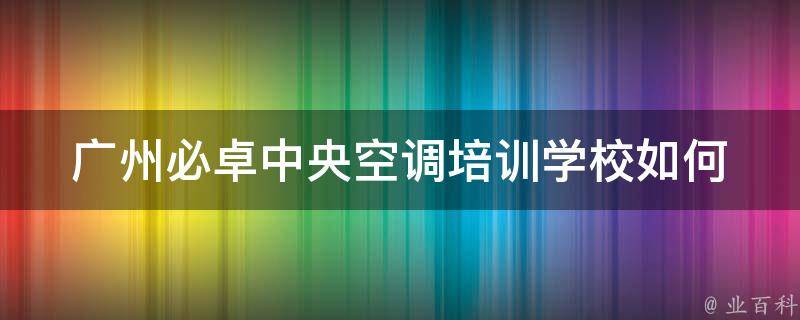 最佳答案广州必卓中央空调培训学校拥有优美的育人环境、雄厚的师资力量、严格的教学管理、合理的专业设置、先进的教学设备。是首批国家中等职业教育改革发展示范学校;广州市人力资源和社会保障局直属公办国家级重点技工学校;首批国家高技能人才培训基地;全国教育科研先进集体;全国职业教育管理创新学校...