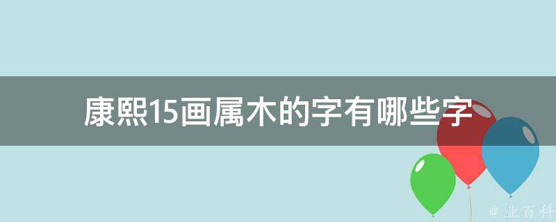 康熙15画属木的字有懂、稻、稼、箭、蕉、樟、横、蕊、蕴、橡、蔬、橄、槽、樯、樱、槿、槲、蕙、樘、樛、槭等。汉字是汉语的记录符号,属于表意文字的词素音节文字。世界上最古老的文字之一,已有六千多年的历史。需要注意的是,日本、朝鲜半岛、越南等国在历史上都深受汉文化的影响,甚至其他语言都存在借用汉语言文字的现象。