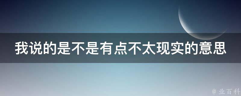 我说的是不是有点不太现实的意思是指某个人和事物的想法不切合实际,太过于理想化。体现了一个人正确的人生价值观念和生活态度,我们每个人做人做事都要符合自己的实际情况,不要好高骛远,不要总是沉浸在不切实际的幻想当中。一定要脚踏实地、求真务实的面对生活的一切,只有这样才能安稳的生活。