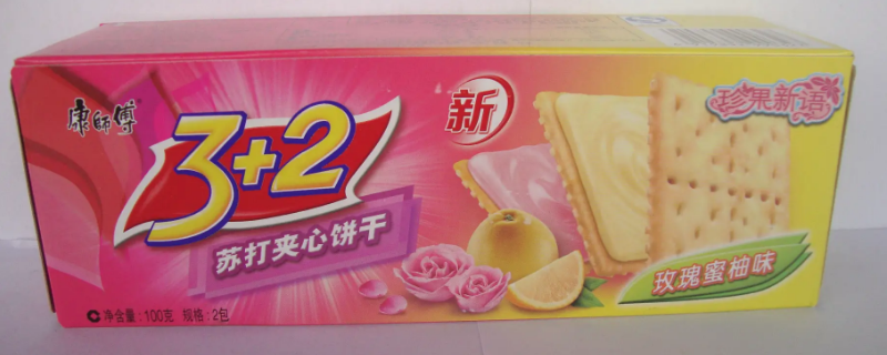 康师傅3+2是1998年出的。康师傅3+2饼干的特点是三层饼干+两层夹心,口感酥脆,有奶油、巧克力、柠檬咖啡等口味,甜而不腻,奶香味十足。这是一款很好吃的饼干,适合当作早餐或者饭后甜点,可以满足爱吃甜品的朋友们的需求。
