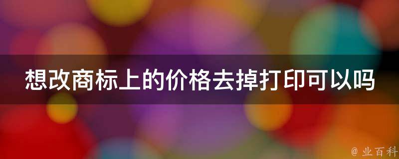 改商标上的价格去掉打印不可以,因为商标上的价格是经过设计、印刷等工艺制作而成的,如果去掉价格,商标就会失去其原有的意义和价值。如果需要修改商标上的价格,建议与商标注册人或相关机构联系,了解相关法律法规和规定,并遵循其要求进行修改。