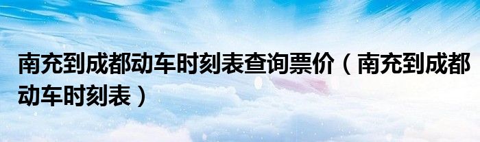 大家好,我是小科,我来为大家解答以上问题。南充到成都动车时刻表查询票价,南充到成都动车时刻表很多人还不知道,现在让我们一起来看看吧!