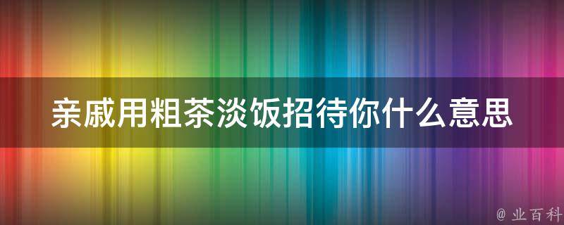 亲戚用粗茶淡饭招待你的意思是用家常便饭,来宴请你。你应该表示感谢并尊重他们的招待。可以尝试在用餐时与他们交流,表达对他们的感激和喜欢。在表示自己生活清苦,或者对客人招待不周的时候,经常会用粗茶淡饭一词自比或自谦。