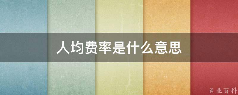 人均费率是指企业或单位在一定时期内为各种费用支出总额与当期平均人数之比,也可以称为人均费用率。人均费率是劳动经济学术语,和劳动生产率相似,是衡量企业或单位经济效率的一项指标。人均费率高则说明企业的效率高,若是人均费率较低,说明企业的效率低。