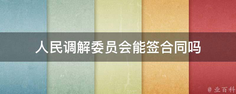 人民调解委员会能签合同。人民调解委员会协议书具有合同性质,根据《中华人民共和国人民调解法》,人民调解是一种自愿、公正、公开的解决纠纷的方式,充分尊重当事人的意愿和自主性。在人民调解过程中,当事人通过互相协商、平等地达成共识,决定达成协议来解决争议。