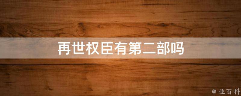 再世权臣没有第二部。《再世权臣》是作者天谢和玉藻动漫创作的漫画作品。电子版由哔哩哔哩漫画发布。作品简介:一朝身死,苏晏穿成了个古代文弱书生,走上被众人环绕的权臣之路。本本皆情债,步步修罗场。