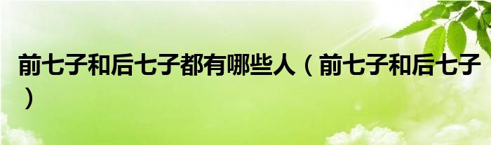 大家好,小联来为大家解答以上的问题。前七子和后七子都有哪些人,前七子和后七子这个很多人还不知道,现在让我们一起来看看吧!