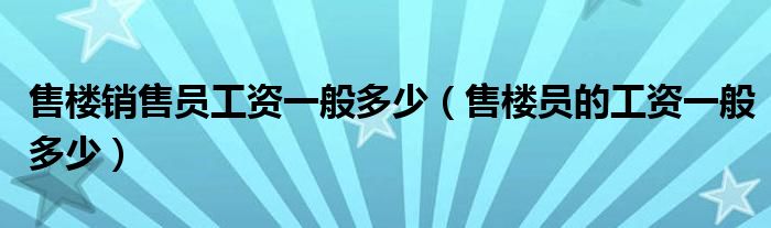 大家好,我是小科,我来为大家解答以上问题。售楼销售员工资一般多少,售楼员的工资一般多少很多人还不知道,现在让我们一起来看看吧!