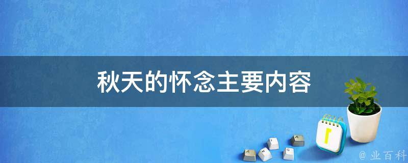 秋天的怀念主要内容是:讲述了作者因为腿部残疾而变得性格异常暴躁,他的母亲为了照顾他而一直默默的忍受这些,甚至以更加宽容、慈爱的心去包容他,更加关爱他。后来,母亲想要去北海看花,可是母亲因为重病缠身,以至于花还没看成,母亲就去世了。母亲在临终前还挂念着作者,而母爱的伟大就在于此。