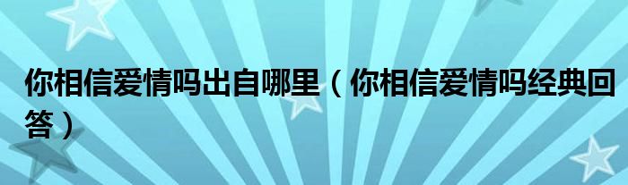 大家好,我是小科,我来为大家解答以上问题。你相信爱情吗出自哪里,你相信爱情吗经典回答很多人还不知道,现在让我们一起来看看吧!