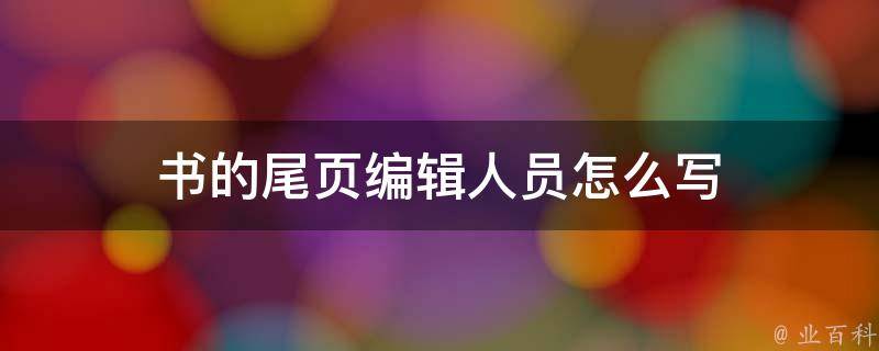 书的尾页编辑人员通常会列出参与该书编辑和制作的人员名单。这些人员可能包括编辑、校对、设计师、排版师、印刷工人等。此外,也可以在编辑人员名单中对整个编辑团队或出版社表示感谢,例如感谢他们在整个出版过程中所做出的努力和贡献。