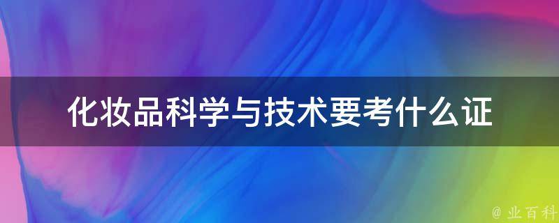 1、国家职业资格证书:是衡量个人职业能力的重要标志,可以有效提升个人的职业竞争力。化妆品技术专业可以考取的职业资格证书包括化妆品评价师、化妆品检验员、化妆品研发工程师等。