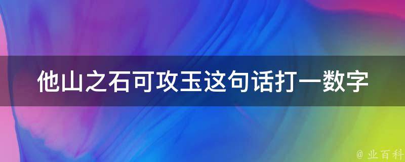 他山之石可攻玉这句话打一数字是10。因为他山之石可攻玉中的石与数字10是谐音,所以,他山之石可攻玉这句话打一数字是10。在数字谐音中,0代表圆满、完美、无尽;1代表唯一、你、起点;2代表爱、两人世界;3代表想念、生命、生活。